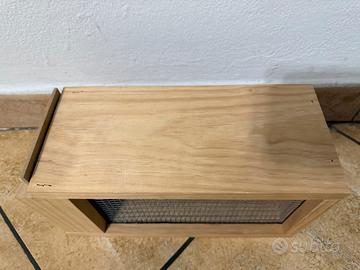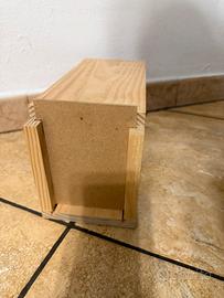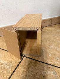 Trasportino in legno per calopsitte, inseparabili e specie simili. Nuovo, mai usato, tre disponibili. Dimensioni: 30 x 12,5 x 15 cm.