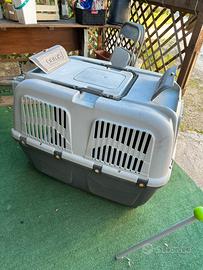Vendo per inutilizzo trasportino rigido usato pochissime volte Omologazione: Conforme agli standard IATA per il trasporto aereo. Caratteristiche: Struttura robusta in plastica con chiusure di sicurezza e griglie di aerazione metalliche. Utilizzo: Adatto per il trasporto in auto, treno, nave o aereo. MISURE: 1.00x60x80 La griglia ci sta la tengo a parte!