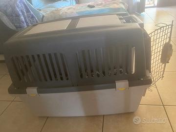 Vendo trasportino rigido per trasporto in auto, treno e aereo. Ciotola in plastica inclusa. Dimensione L 72 x P52 x H 51.