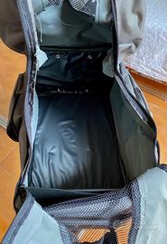 Come da foto trasportino per cani o gatti di piccola taglia che può essere portato anche come zaino.