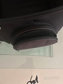 Trasportino da moto Saddlemen color nero ( le variazioni del colore e’ dovuta alla luce della macchina fotografica) l articolo e’ perfetto. Dotato di prese multiple per la circolazione dell aria e per accendere facilmente al carico e scarico dell animale L articolo completo di vassoio rimovibile e lavabile, cuscinetto di riposo. Sistema di montaggio cinghie regolabili per fissare il sissy bar alla sella , portapacchi o al sissy bar .Cinghie a sgancio rapido per consentire di rimuovere il sissy bar velocemente Morbido cuscinetto per il vostro comfort o per il comfort del passeggero. Maniglia robusta e cinghie per trasformare il sissy bar in uno zaino Guinzaglio corto all interno e lungo da passeggio.Supporto scorrevole per guinzaglio per far muovere l animale liberamente ma in totale sicurezza Misura Altezza 35,5cm , Lunghezza 40,5cm Profondità 35,5 cm , 52,4 litri