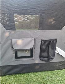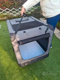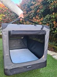 Il kennel è stato usato due volte e conteneva molto bene il nostro Golden Retriever; essendo flessibile si può inserire e aprire sui sedili posteriori della macchina. E' dotato di aperture sia anteriore che superiore e all'interno ha un morbido tappetino lavabile. Il kennel stesso è completamente sfoderabile e lavabile, La presenza di aperture in rete garantisce un'ottima ventilazione.