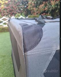 NUOVISSIMO trasportino in tessuto scuro, smontabile (nel qual caso si riduce ad una scatola di 64x96x9)
