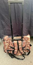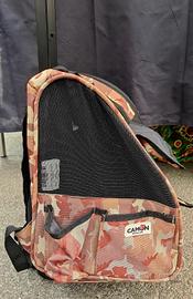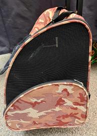 Trasportino trolley camouflage Camon € 87,90 prezzo originale Camon, trasportino molto versatile, per rendere ogni vostro spostamento con il cane piacevole e sicuro. Pratico ed elegante, è la soluzione ideale per portare il vostro piccolo amico sempre con voi, a passeggio, in viaggio, dal veterinario ed ovunque vogliate! Con una semplicissima regolazione, si trasforma in pochi istanti in un trasportino su ruote, in uno zaino, in un seggiolino per auto e persino in una comoda cuccia. – Tessuto resistente e lavabile – Tasche laterali con cerniera – Inserti in rete di aerazione – Completamente pieghevole, si ripone in poco spazio dopo l’uso Regolazioni altezze manico (da terra): – Misura base (a riposo): 40cm – Misure con blocco intermedie: 66 cm e 76 cm – Estensione con blocco massima: 87 cm Misure : 42 x 25 x 35h