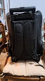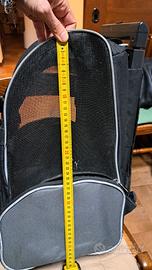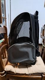 Trasportino nero, doppia funzione trolley o zaino, spallacci imbottiti, due tasche laterali. Usato 4 volte per anno, ruote ottimo stato, cerniere funzionanti. Ritiro a Novate Milanese, non prevista spedizione.