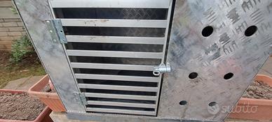 cedo per cambio auto trasportino alluminio mandorlato 3mm a tenuta stagna e vasca smontabile. ci stanno 3-4 epagneul breton. su misura su daihatsu terios ma entra in tutti i fuoristrada suzuki, nissan, toyota ecc. misure larghezza 76 x altezza 61cm x profondità 57cm. visto e piaciuto. possibilità di consegna in tutta Italia a spese dell'acquirente.