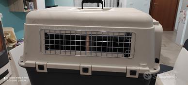 trasportino di qualità conforme ai requisiti iata, ottimo per due gatti o cani di piccola taglia con porticina di separazione interna in legno estraibile.Misure 68*50*50. Come nuovo,consegna solo a mano.