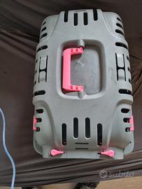 "Vendo secondo trasportino per animali domestici, perfetto per trasportare in sicurezza il tuo gatto o il tuo cagnolino. Struttura solida, sicura e ben ventilata, ideale per ogni tipo di spostamento.