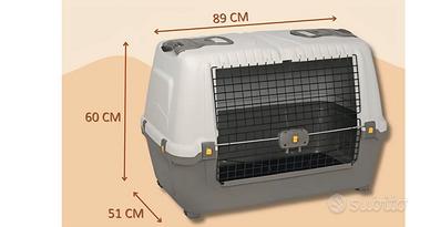 Trasportino car cane, in plastica con porta in ferro. Dimensioni 89x51x60cm
