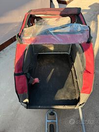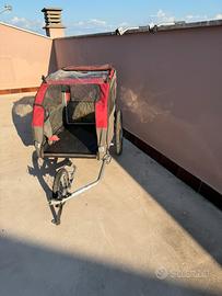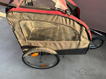 Vendi rimorchio per bici di taglia grande usato ma funzionale. Si può attaccare soa alla bici che soingerlo a mano con maniglione posteriore e terza ruota montabile.