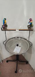 Raffinato Trespolo Croci per Pappagalli con ruote e supporti in legno, misure 75x70x134 cm. fondo in metallo per contenere la lettiera e comode ciotole sospese facilmente rimovibili per la regolare pulizia e sostituzione di acqua e cibo.Articolo nuovo.Ultimo pezzo.Prezzo listino 169,90€ scontato a 155€.Consegna a mano su bari città.