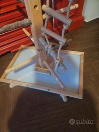 Vendo trespolo artigianale per pappagalli, realizzato in legno naturale non trattato. Struttura robusta e stabile con base ampia, rami di diverso diametro, scalette in corda, giochi e ciotola in acciaio inox. Ideale per pappagalli e perfetto come area gioco e riposo fuori dalla gabbia. Usato, in ottime condizioni. Ritiro a mano consigliato.