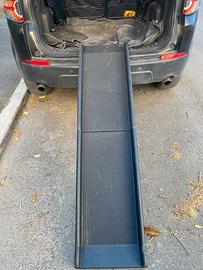 Rampa per cani in plastica, robusta e durevole, pieghevole, leggera. Come nuova Sopporta pesi fino a 90 kg. Dimensioni estesa: 156 x 40 x 10 cm. Dimensioni piegata: 78 x 40 x 20 cm. Peso del prodotto: 4,5 kg Utilizzata soltanto 2 volte.