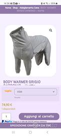 Tuta termica per l'inverno, grazie allo strato interno riflette il calore corporeo elevando la capacità riscaldante del capo. Morbida ed elastica. Le istruzioni dicono che va bene per: cocker spaniel, pumi, perro de agua espanol. Dimensioni dorso: 42-47 cm e torace: 55-70 cm.