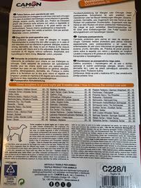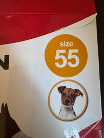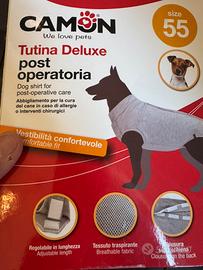 Tutina post operatoria per cani marca Camon, colore grigio, taglia 55, acquistata 20 giorni fa per una border collie e mai utilizzata. Prezzo di acquisto 51 euro. Allego foto della scatola con misure.