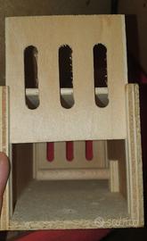 Valigetta professionale per il trasporto di uccellini (taglia canarini e simili) in numero fino a 18. Contiene cellette singole in compensato di dimensioni 9x9x15cm con posatoio interno. È dotata di ventilazione naturale intercomunicante per tutte le cellette. Leggera e robusta, praticamente mai usata. Ritiro Milano città zona Sud