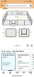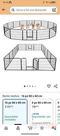 tutto nuovissimo per cani taglia medio piccolo. passeggino usato due volte. recinto con due ingressi che può diventare anche piccolo. coperta scalda cuccia ottima per cani freddolosi e un kit ciotole comode spaziose ed esteticamente eleganti