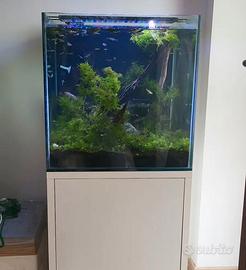 Vendo acquario extra chiaro ancora in funzione con filtro esterno Oase Bio master Thermo 350 con riscaldamento all interno del filtro plafonierna alba/tramonto, Oase Christal Skim 350, Areatore professionale , terminale in vetro uscita acqua . Solo da pulire. Mobile a cubo con ciabatta installata all’interno. Accessori vari nella vasca ci sono diverse piante /muschio e molte pietre Dragon Stone ADA legni di mangrovia sempre ADA fondo super fertile con caridine e barbus ciliegia. Ritiro e trasporto a carico dell acquirente, prezzo poco trattabile vendo solo in blocco . Vasca 50x50x50 Mobile 50x70
