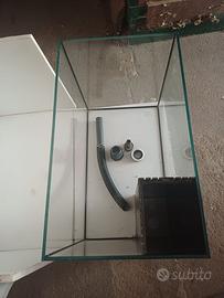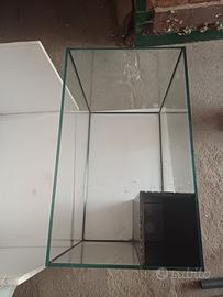 Vasca in vetro spessore 1,2 cm misura 45x75xh65 con pozzetto di 20x16cm in cui allocare un filtro per acqua dolce o da usare come pozzetto di collegamento con la samp del marino