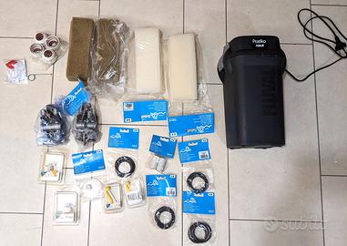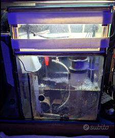 Acquario Askoll Tenerif 200 (100x40x50) con pozzetto di tracimazione, foro passante inferiore, usato ma in buone condizioni, con lampada e filtro esterno Pratiko 200. In aggiunta, compresi nel prezzo, ricambi originali nuovi per filtro Pratiko, 2 neon T5 Powerglow nuovi, sump in vetro, serbatoio per acqua di rabbocco.