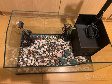 Vasca per tartarughe con ricircolo dell acqua , misuratore della temperatura, sassolini e lampada scaldante misure L 60x 30 H 30