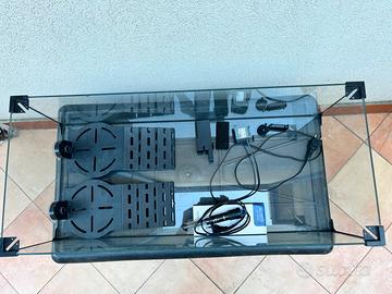 Si tratta di una Zoluz Karapas 80 Pro, con griglia, filtro in dotazione, 2 piattaforme, un termoriscaldatore da 25W, ed una confezione ancora sigillata di mangime Sera Raffy da 3800ml. C'è un piccolo punto del vetro che si è scheggiato ma questo non compromette assolutamente la funzionalità della vasca. Per tutto chiedo 80 €. Non faccio spedizioni.
