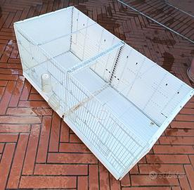 Voliera zincata bianco, completa di 4 mangiatoie, 4 posatoi, 2 beverini, 1 divisorio in plastica.