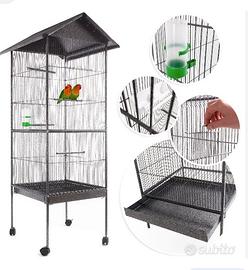 Voliera in metallo con due porte scorrevoli con alcuni giochi tipo foto : ponte ,sonaglini ,filo aspirale , specchio , abbeveratoio, mangiatoia. No perditempo ritiro a mano