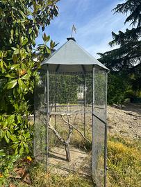 Voliera a fattura artigianale in ferro battuto. Altezza massima 240 cm di cui 60 cm di tetto, ogni lato 100 cm, altezza porta 70 cm. Da ritirare sul posto.