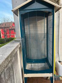 Voliera da esterno , interno , per uccelli di piccola e media taglia , in ottimo stato , comoda da pulire e gestire. Necessita solo di un ritocco di colore in alcune minime parti.