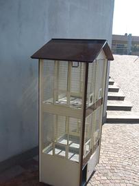 Voliera produzione Lazzari.Misure H. 180 x 80 x70. Ripostiglio portaoggetti sottostante. Disposta su rotelle. Divisibile in 4 settori con cassetti e griglie. Doppi accessi fronte e lato per ogni settore. Ottime condizioni di vernice e pulizia. Euto 150 - cell. 333 6134279