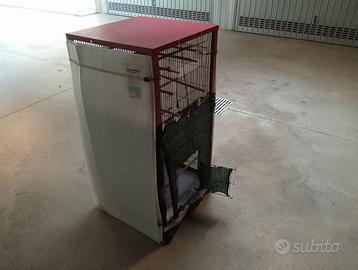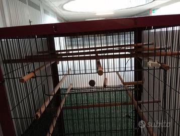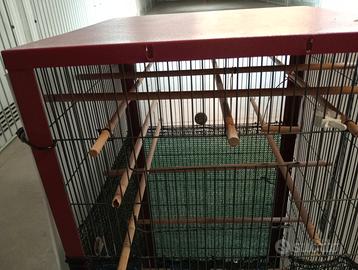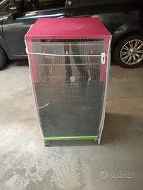Voliera canarini usata ma tenuta bene molto pulita sempre stata in casa e da 3 mesi in box ho messo rete ombreggiante per quelle poche volte che la mettevo balcone per riparare dal sole i canarini se poi non la volete la posso rimuovere la rete! sul fondo mettevo un sacco per pulire meglio verrà consegnata pulitissima ne ho due da vendere li avevo unite per farla più alta una e di colore verde l'altra bordò di colore l'altra e un cantina sempre rivestita di rete ombreggiante vendo a 40 euro l'una se le prendete tutte e due prezzo 60 euro