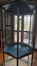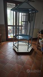 Voliera per uccelli esagonale. Ideale per esterno. Con cassettino apribile per facilitarne la pulizia. Usata in buonissime condizioni. La base in legno nn è compresa nel prezzo. Sassari.