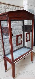 Vendo bellissima gabbia/voliera artigianale in legno di afrormosia, robusta e di alta qualità.