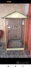 A malincuore, per problemi di spazio, vendo bellissima voliera spaziosa e capiente. La gabbia , dispone di 10 porte piccole, 2 porte grandi, doppio fondo estraibili, l'ho usata per poco tempo per due coppie di pappagalli. Le ho sostituito le 4 ruote di plastica con ruote a cuscinetti, è completa di accessori e posatoi fatti da me, due ciotole acciaio, due beverini mangiatoie, un nido da cova.