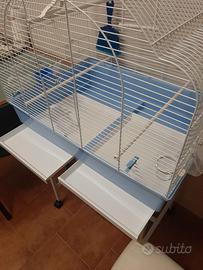 Voliera, gabbia per uccelli e pappagalli, gabbia 70x 50 misure come da foto. La Voliera è pari al nuovo, compresa di accessori e carrello porta gabbia, Ritiro a mano a Briosco ( mb) non spedisco. Pagata come foto da sito , si vende a 80 euro.
