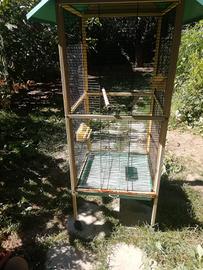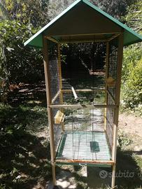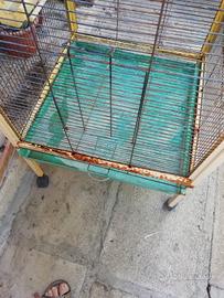 Gabbia in ferro 60 × 60 x 170 cm. con fondo scorrevole per pulizia, grata rimovibile, con 2 posatoi in legno e 2 recipienti. Con 4 piedi scorrevoli che si possono bloccare per evitare che la gabbia cammini. Condizioni buone, vedi foto.