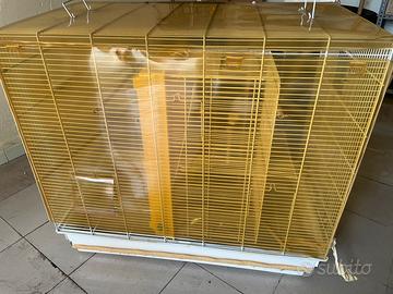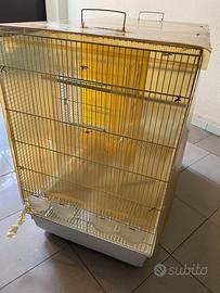 Vendo voliera grande dimensioni 90×50×80 cm (altezza) completa di accessori, perfetta per piccoli uccelli domestici come canarini, diamantini, cocorite o simili.