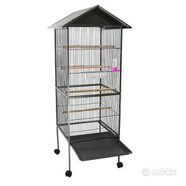 Grazie alle ruote (con blocco) di cui è dotata può essere facilmente spostata, ha il ripiano estraibile sul fondo per pulire meglio, due aperture frontali una porta più grande ed una più piccolina, inoltre sono compresi anche una mangiatoia e un beverino in plastica ed alcuni posatoi in legno.