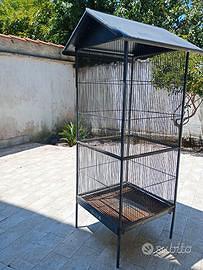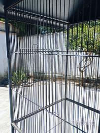 Voliera con doppia apertura in ottime condizioni, misure: 150cm(altezza)×64cm(profondità)×65cm(larghezza); apertura frontale: 23cm(altezza)×20cm(larghezza); apertura sul retro: 23cm(altezza)×11cm(larghezza). Perfetta sia per pappagalli che per altri tipi di uccello. In regalo anche un beverino. Ritiro presso il mio domicilio, abito vicino ad Acilia. Per qualsiasi informazione contattatemi.