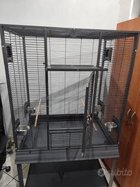 completa di carrello 4 mangiatoie e 3 posatoi in legno, le mangiatoie non sono stai mai usati