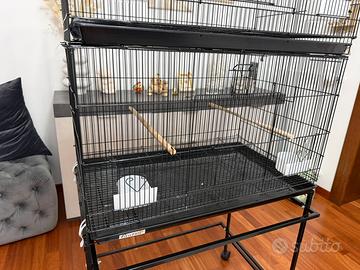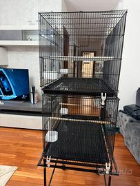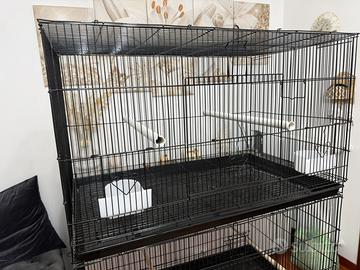 Gabbia per uccelli/pappagalli con partizione doppia, ideale per chi ha due coppie o volatili di razza differente che non possono stare insieme! Facile da pulire! Dimensioni 77Lx46lx164H Impilabile, vassoi estraibili, pannelli in rete sul fondo, 4 mangiatoie incluse Vendo per inutilizzo! Solo ritiro in zona!