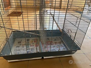 Salve, vendo questa voliera usata per due pappagalli in buone condizioni. Purtroppo uno dei due è venuto a mancare e non ha senso averne una così grande per uno piccolino come il mio. Le misure sono: altezza 79, lunghezza 80 e profondità 48. Ci sono alcuni inserimenti e modifiche all’interno (erano due maschietti quindi erano separati). Tutto rimovibile ed adattabile. Vendo con accessori come in foto.