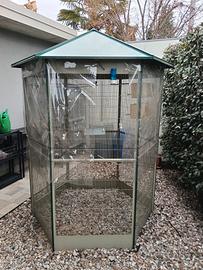 Cedo per cambio dimensioni Voliera esagonale da giardino come da foto. Dimensioni, Altezza 2.30mt, Larghezza. 1.60mt.