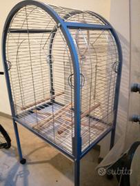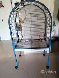 Struttura realizzata in tubolare verniciato (con polvere atossica) quadro da 2,5X2,5X1,2 cm. Dimensioni Esterne: 85 X 55 X 155 H (Max Altezza 175 cm. con porte sup. aperte) Dimensioni Interne: 80 X 50 X 87 H Colore Blu Maglie Rete: 2,2 cm. Porta Centrale: 33 X 40 H cm. Posatoi: Posatoio 1: Lunghezza 85 X Ø 2,9 cm. (si tratta del più alto quando la voliera è aperta) Posatoio 2: Lunghezza 72 X Ø 2,9 cm. Posatoio 3-4: Lunghezza 53 X Ø 2,9 cm. CONSEGNA SOLO A MANO