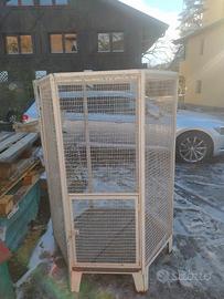 voliera esagonale molto robusta 170cm h più 30 cm tetto( rosso) x 90 cm larghezza. fondo estraibile x pulizia, mancano sostegni e abbeveratoi reperibili in negozio animali.
