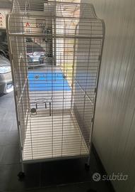 Come da titolo vendo voliera x uccelli di media e grossa taglia in ottimi comdizioni di colore bianco doppia porta grande sia centrale che sopra che si puo usare come trespolo e poi 3 aperture x ciotele in acciaio e conpleta di tutto non Manca nulla usata sempre ed esclusivamente in casa.