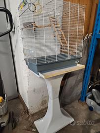 voliera con piedistallo e ruote x spostamenti agevoli. in ottimo stato con accessori