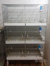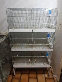 3 voliere 90 × 50 dotate di fondo-griglia, divisorie, mangiatoie e abbeveratoi compreso di carrello mobile come nuove contattare tramite Whatsapp 3487428067