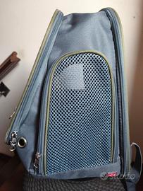 Vendo pratico zaino porta animali, ideale per passeggiate, trekking o visite dal veterinario. A differenza dei modelli a "bolla" che possono surriscaldarsi, questo zaino garantisce il massimo ricircolo d'aria grazie alla sua struttura in rete.